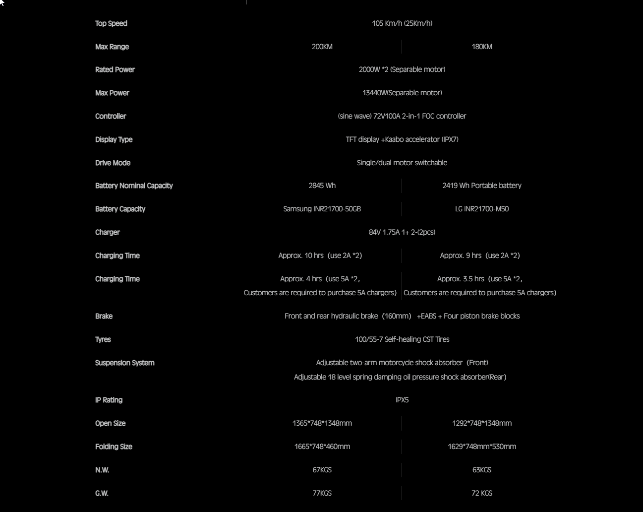 • Charging: Χάρη στους έξυπνους ελεγκτές, υποστηρίζει γρήγορη φόρτιση, γεμίζοντας τη θηριώδη μπαταρία σε περίπου 6-7 ώρες με διπλούς φορτιστές.